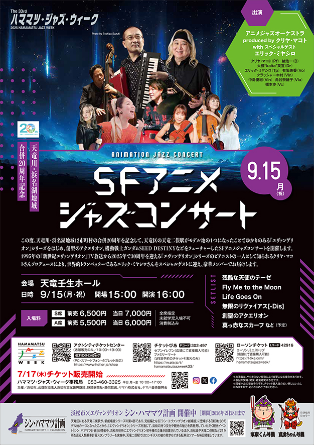 来月10/18(土)からはじまる、浜松の秋を彩る音楽の祭典「第33回 ハママツ・ジャズ・ウィーク」。 それに先立ち、9/15(月祝)に開催されるのが、今回ご紹介する「SFアニメジャズコンサート」。