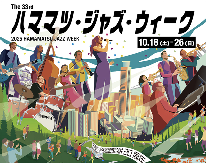 浜松全体がジャズに染まる9日間「ハママツ・ジャズ・ウィーク」が今年も開催! “まち中に音楽があり、音楽がまちをつくり出す”をテーマに、官民が一体となって運営されるこのイベントは、浜松が誇る文化の象徴です。