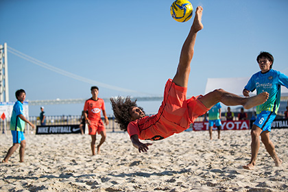舞台は、浜松まつりの凧揚げ会場として知られる遠州灘海岸&中田島砂丘。ビーチサッカー、ビーチフラッグ、ビーチラグビー、サーフィン体験のほか、砂の造形教室やウミガメ放流体験まで、“ビーチを体感する”コンテンツがぎっしりで、老若男女が楽しく参加することができますよ。