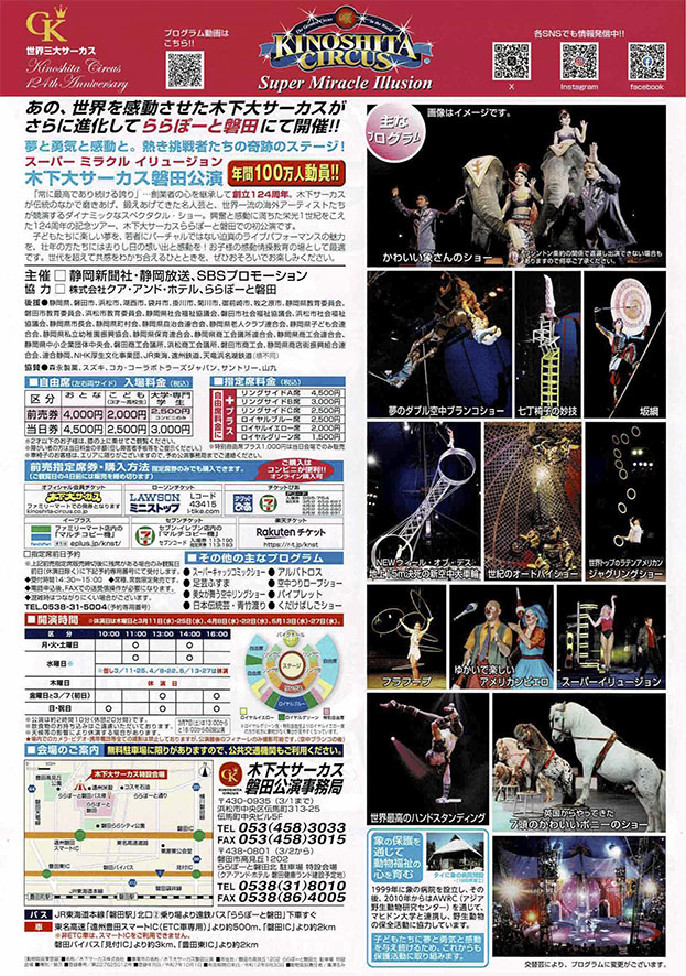 問合:0538-31-8010(木下大サーカス磐田公演事務局)